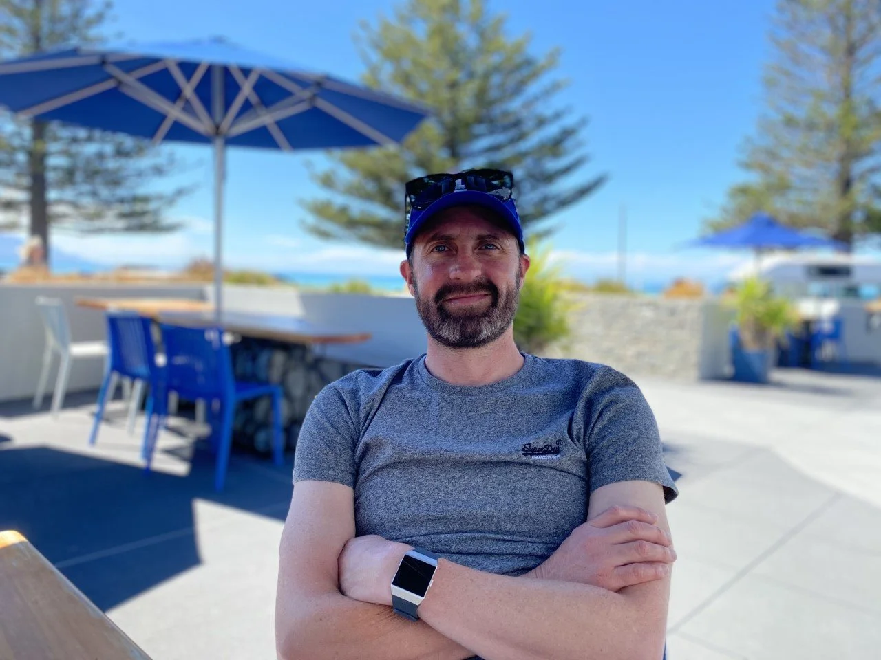 Dan outside the Dolphin Encounter building - a great cafe spot